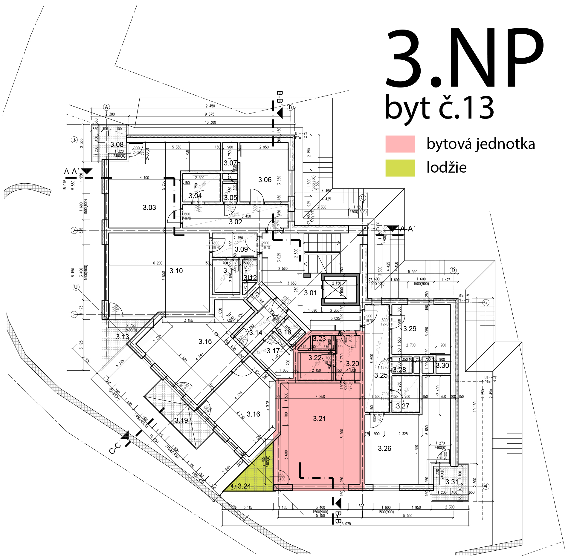 Rozpis místností - byt č. 13